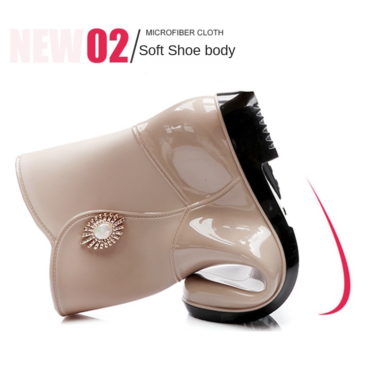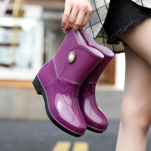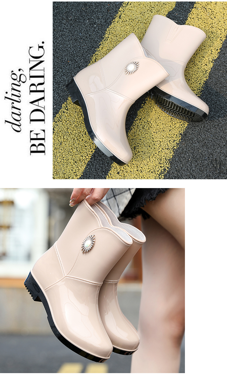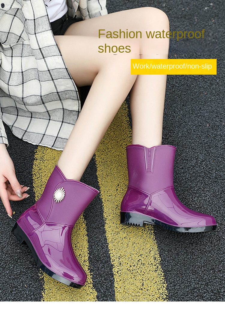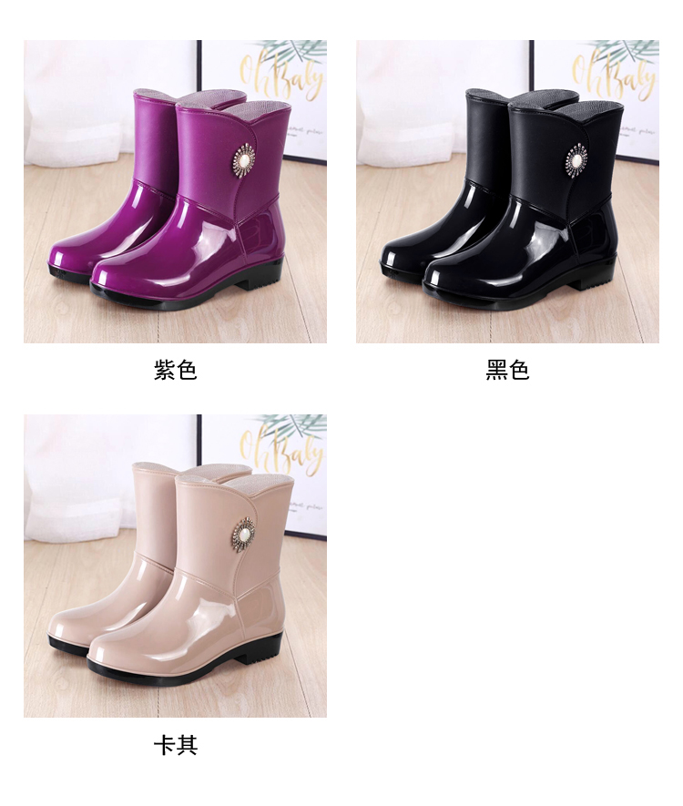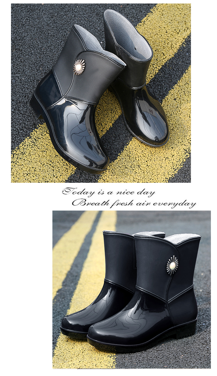 Rain boots for women, fashionable outdoor, waterproof anti-slip kitchen work rubber shoes with cotton warm rain boots for winter