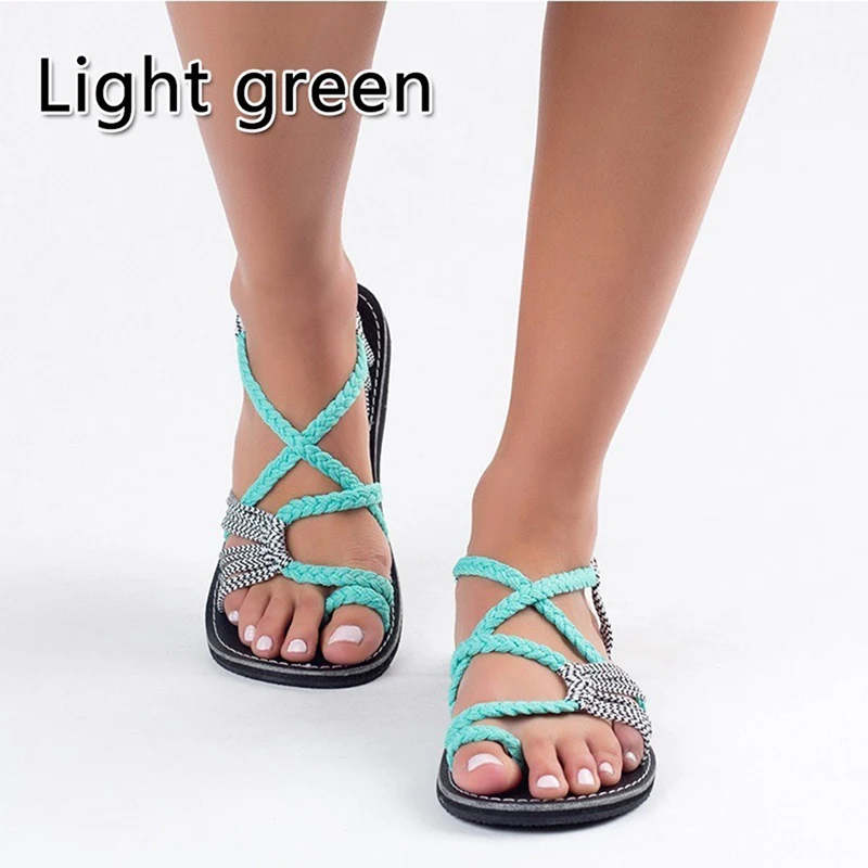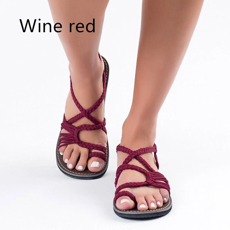 Rome Weaving Women Sandals Open Toe Flats Casual Shoes Summer New Ladies Beach Rope Knot Girls Big Size 35-43