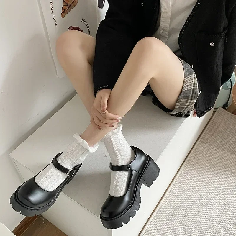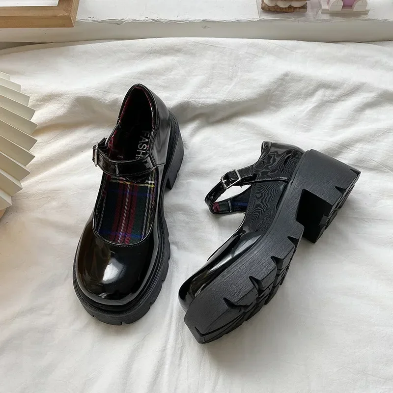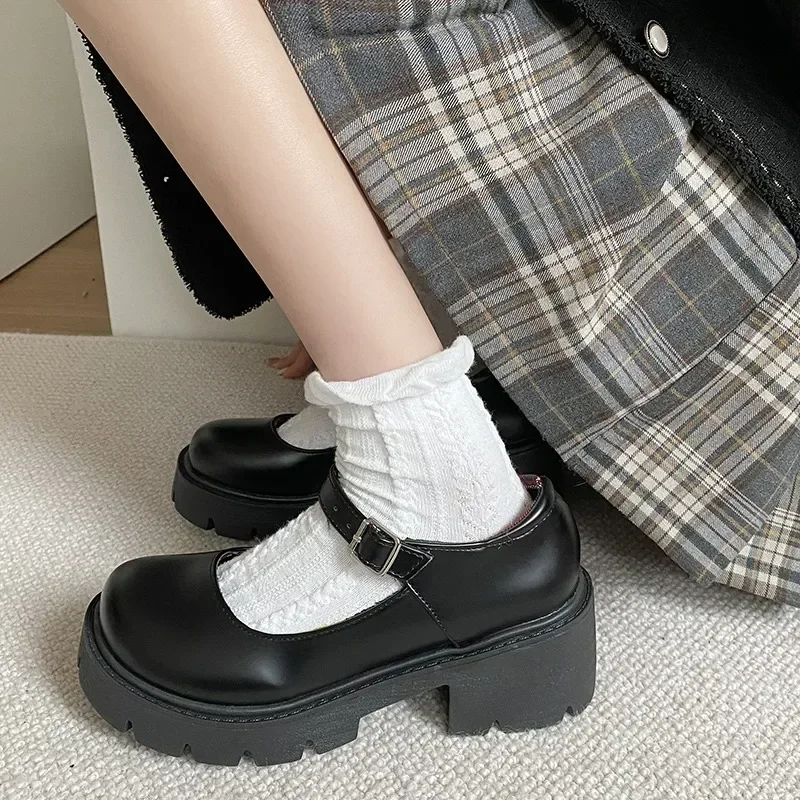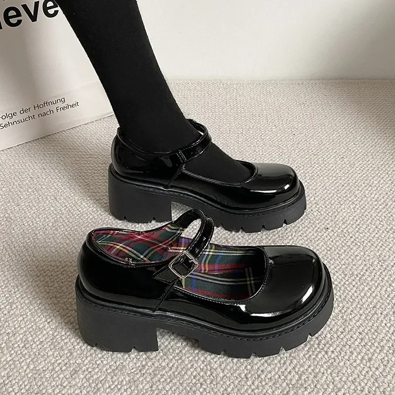 Shoes Ladies 2024 Spring New Fashion Brand Mary Janes Shoes Women Classics Office Buckle Strap Platform Square Heel Women Pumps