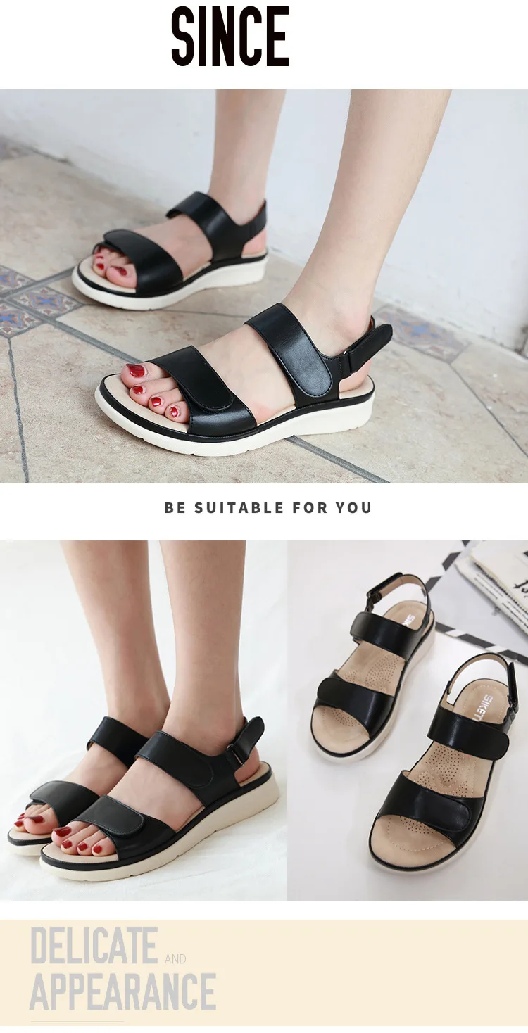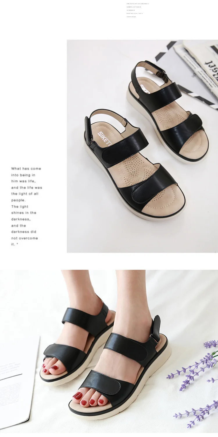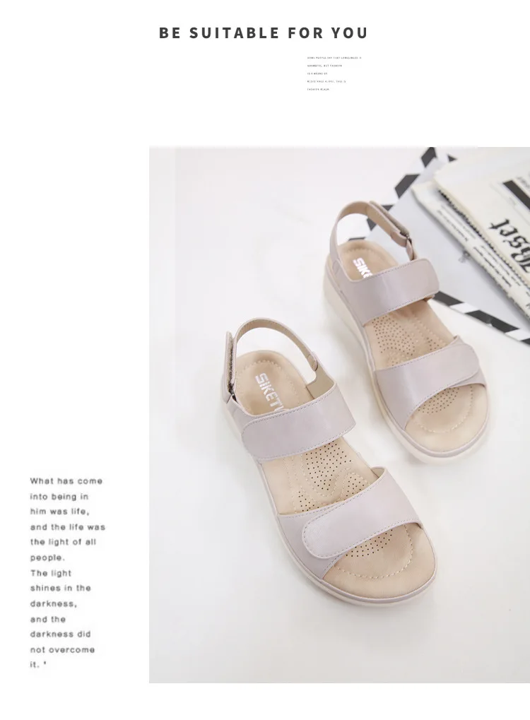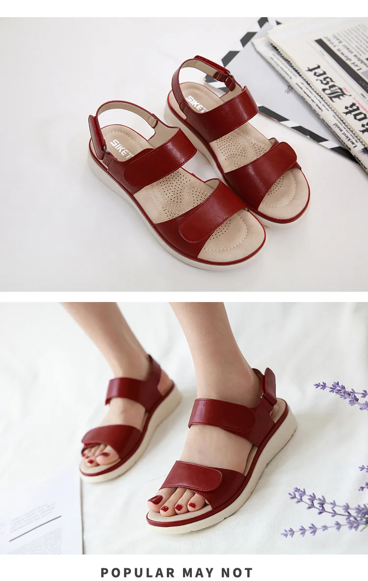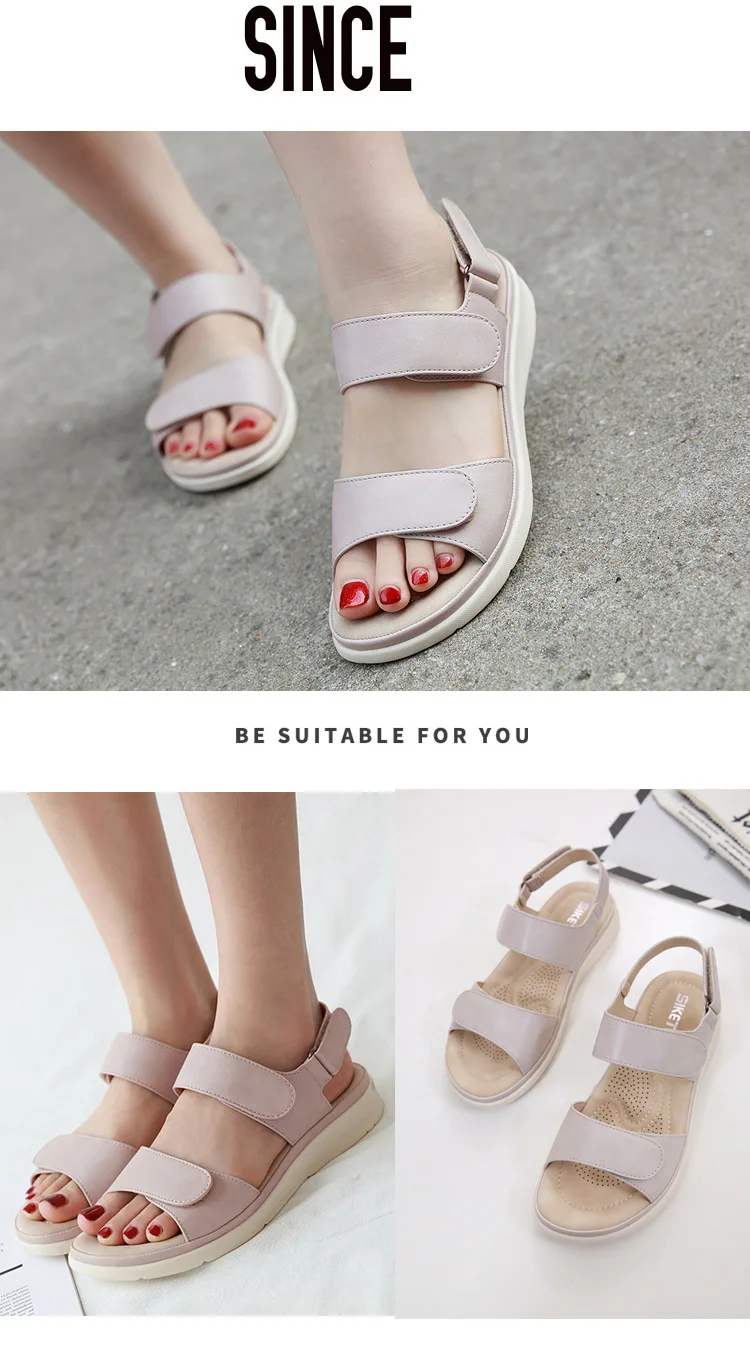 SIKETU Brand Summer Fashion Women Flat Heel Classic Sandals Buckle Hook Loop Simple Wedge Shoes Mid Heel Soft Comfort Footbed 41