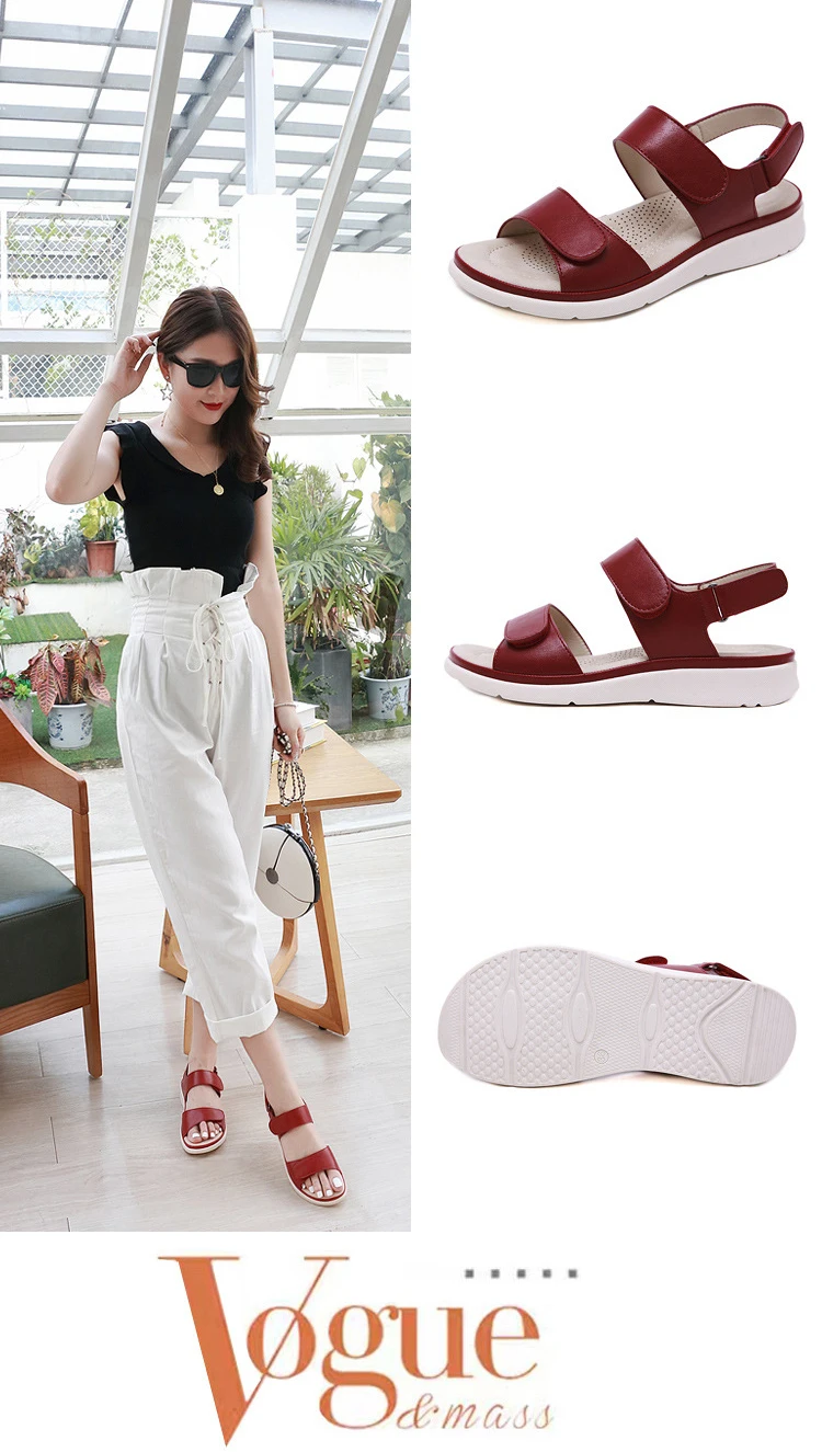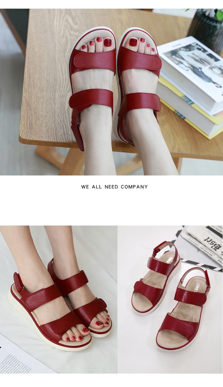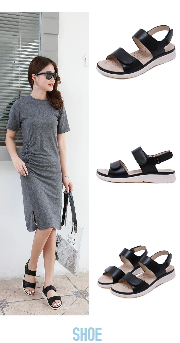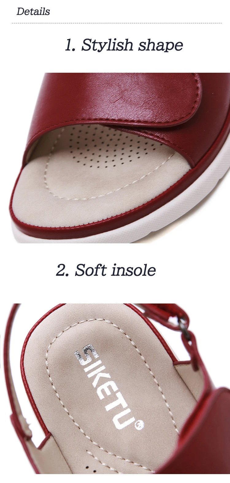 SIKETU Brand Summer Fashion Women Flat Heel Classic Sandals Buckle Hook Loop Simple Wedge Shoes Mid Heel Soft Comfort Footbed 41