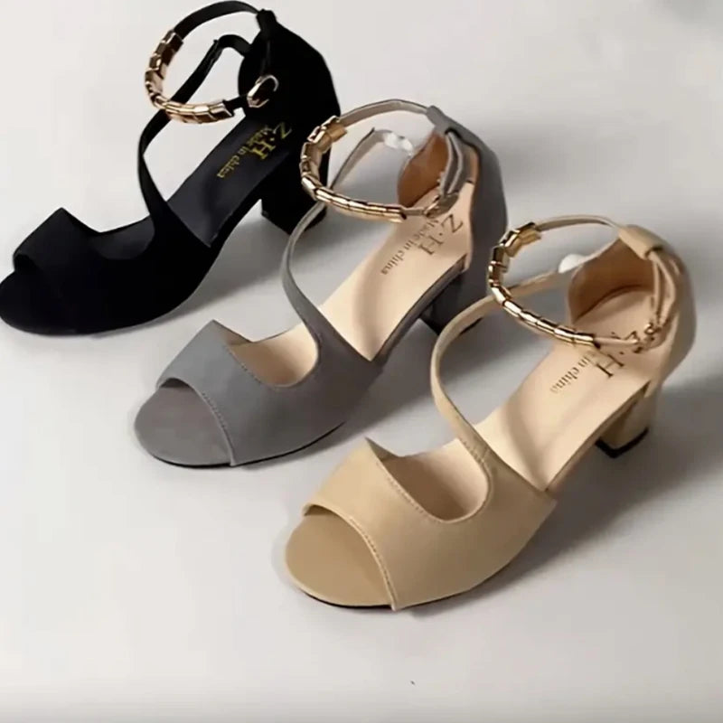 Women Beaded Sandals High Heels Chunky Shoes Fashion Ankle Buckle Shoes Summer New Brand 2024 Walking Elegant Zapatos Mujer