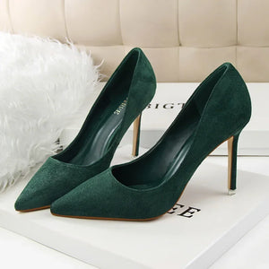Women Elegant Flock Orange Purple Evening Banquet Party Pumps Lady Classic Scarpin New Burgundy 9cm High Heels Shoes Plus Size
