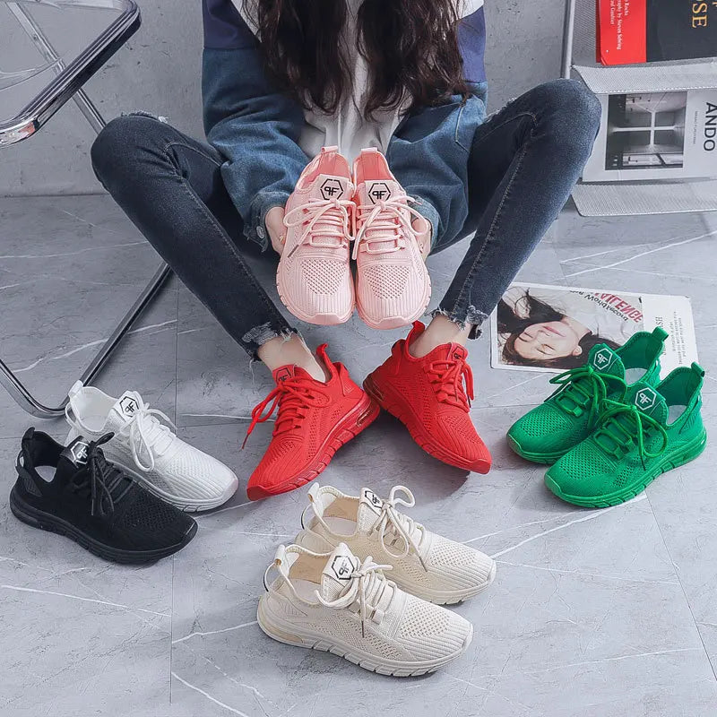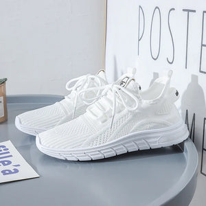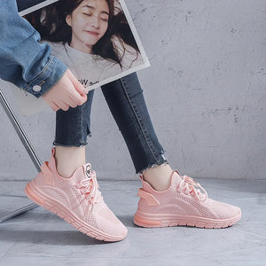 Women Fashion Casual Sneakers Comfortable Mesh Lace-Up Ladies Sport Shoes Women's Walking Mesh Flat Breathable Vulcanized Shoes