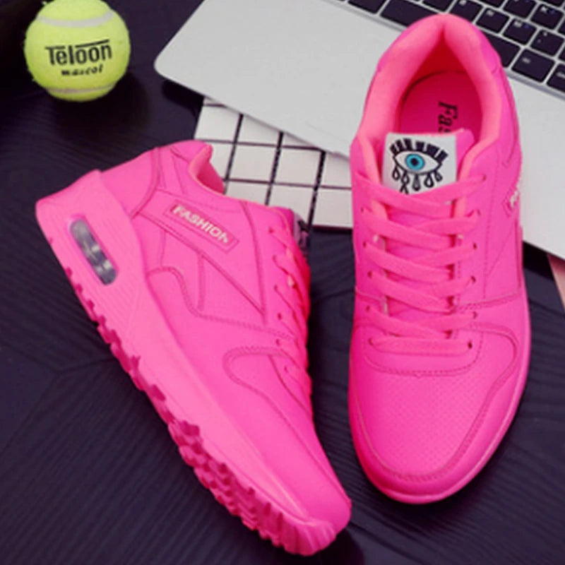 Women Fashion Sneakers Air Cushion Sports Shoes Pu Leather Blue Shoes White Pink Outdoor Walking Jogging Shoes Female Trainers