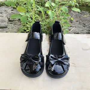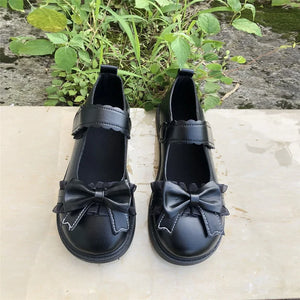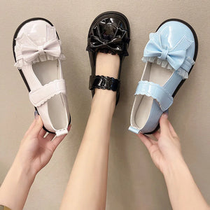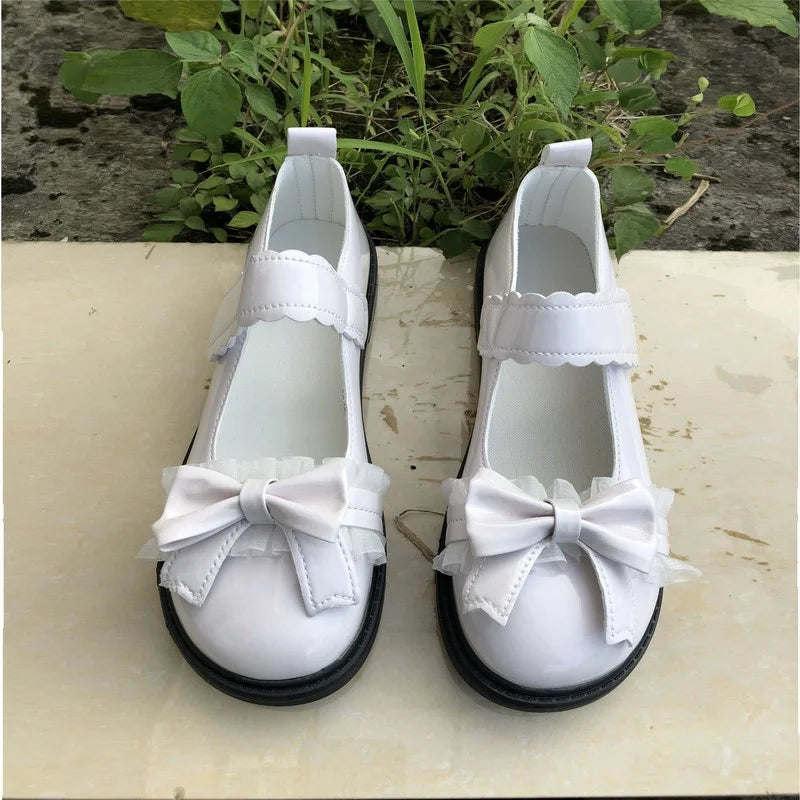 Women Lolita Shoes Kawaii Japanese Style Lace Patchwork Bow Hook Loop Mary Janes Girls Students shoes Solid Footwear